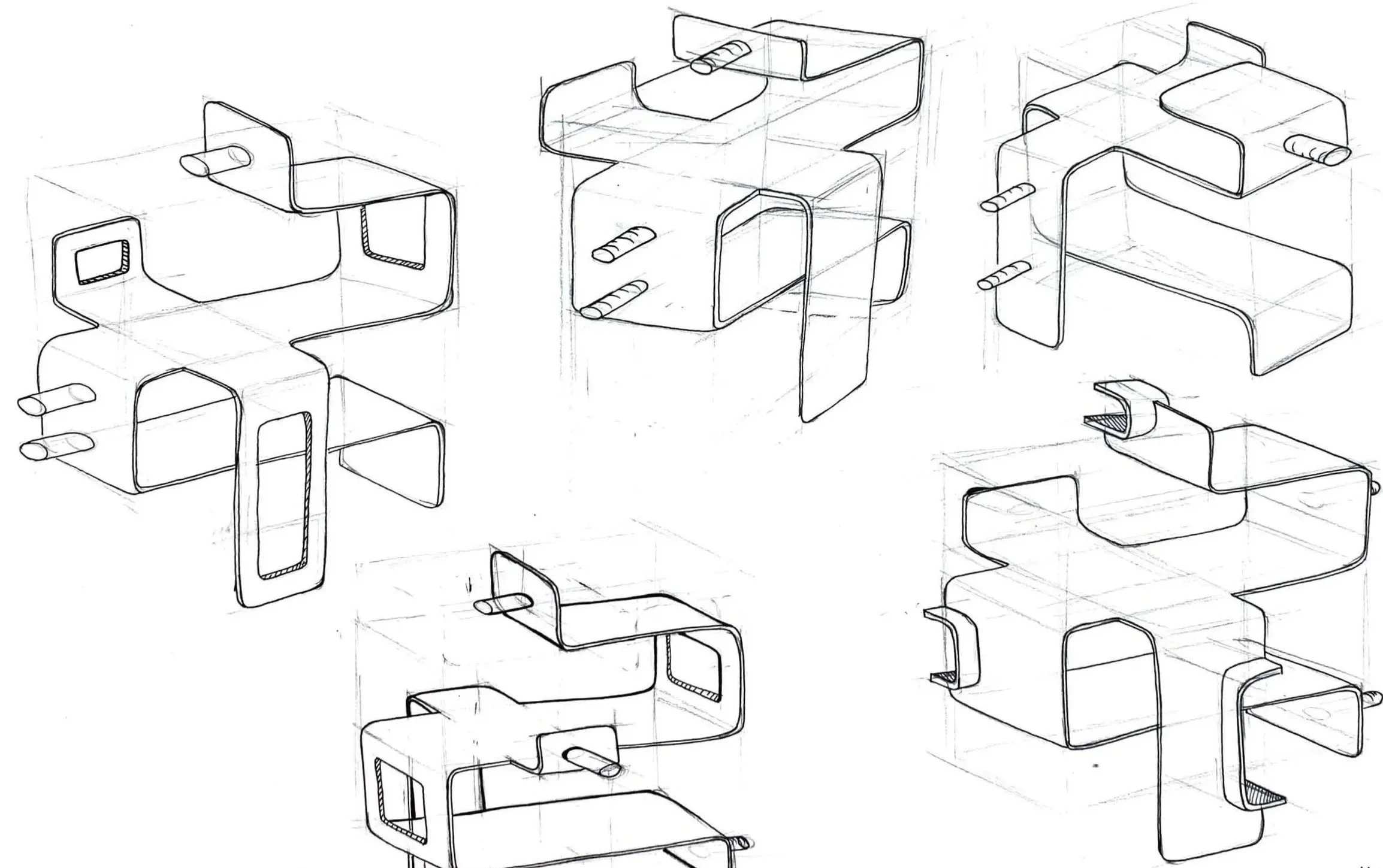 Due to the tight curve of planes within the project, Acrylic proved to be a perfect material. With the use of laser cutting and a strip bender I developed some mid-fidelity models.