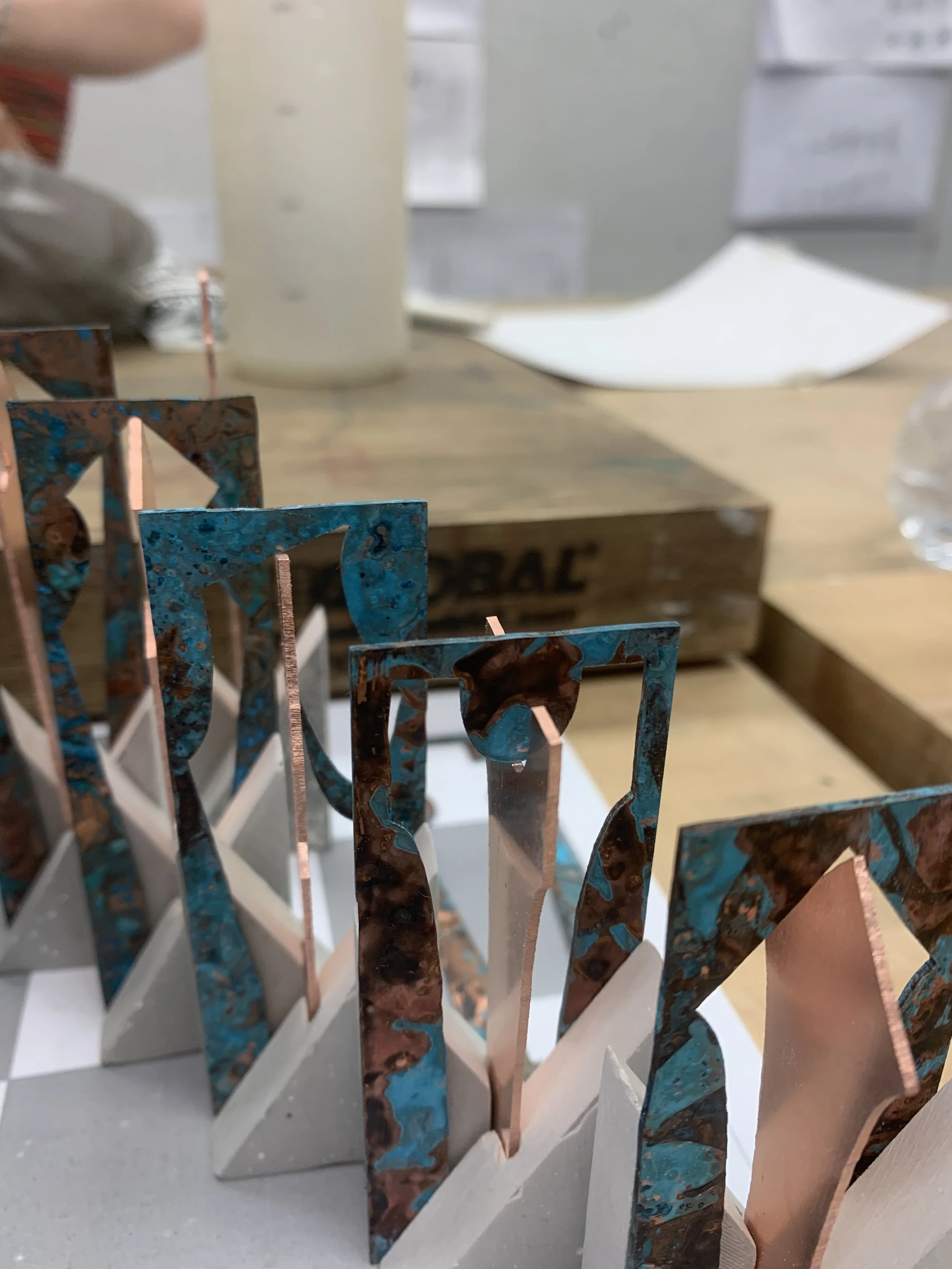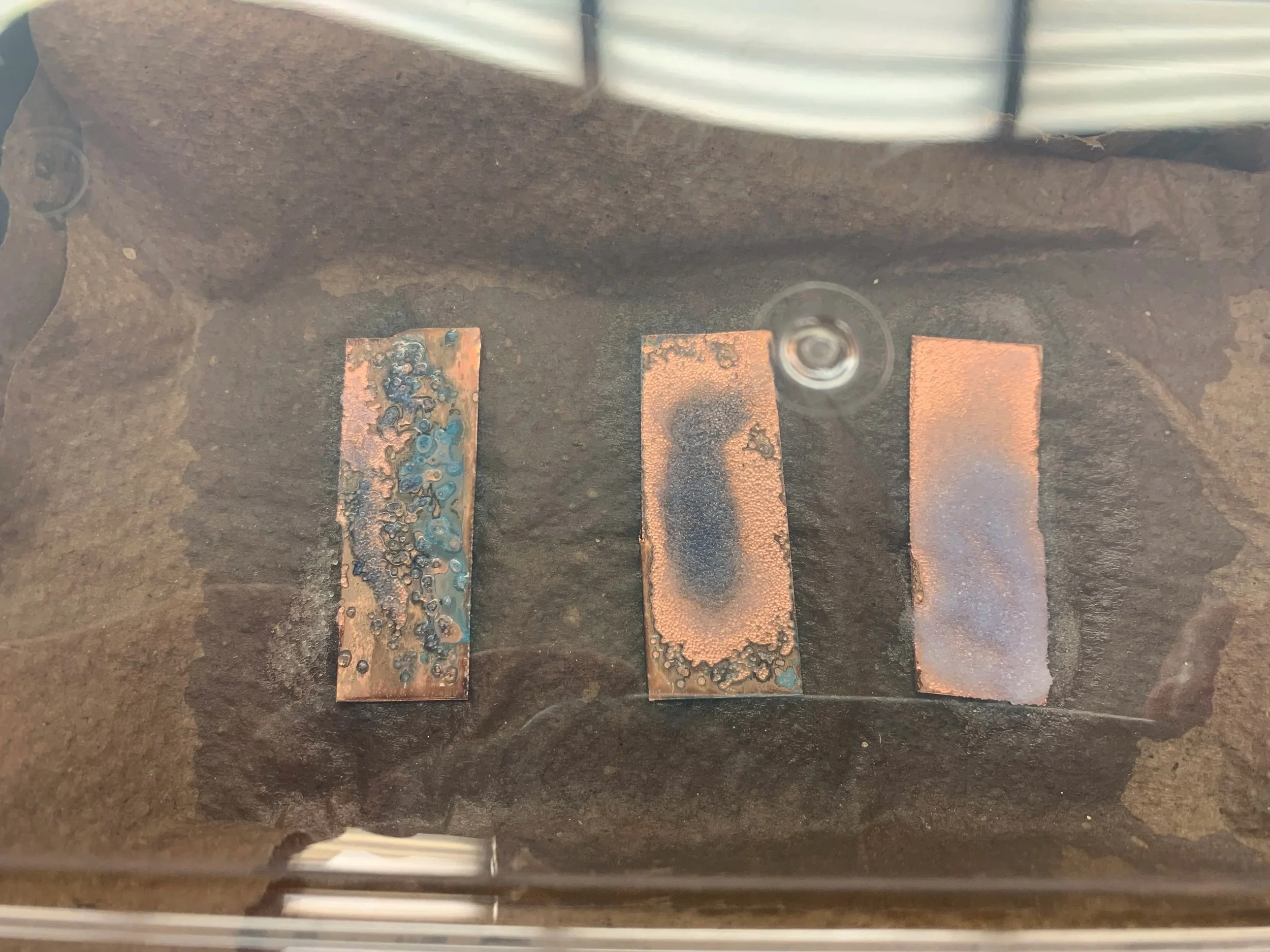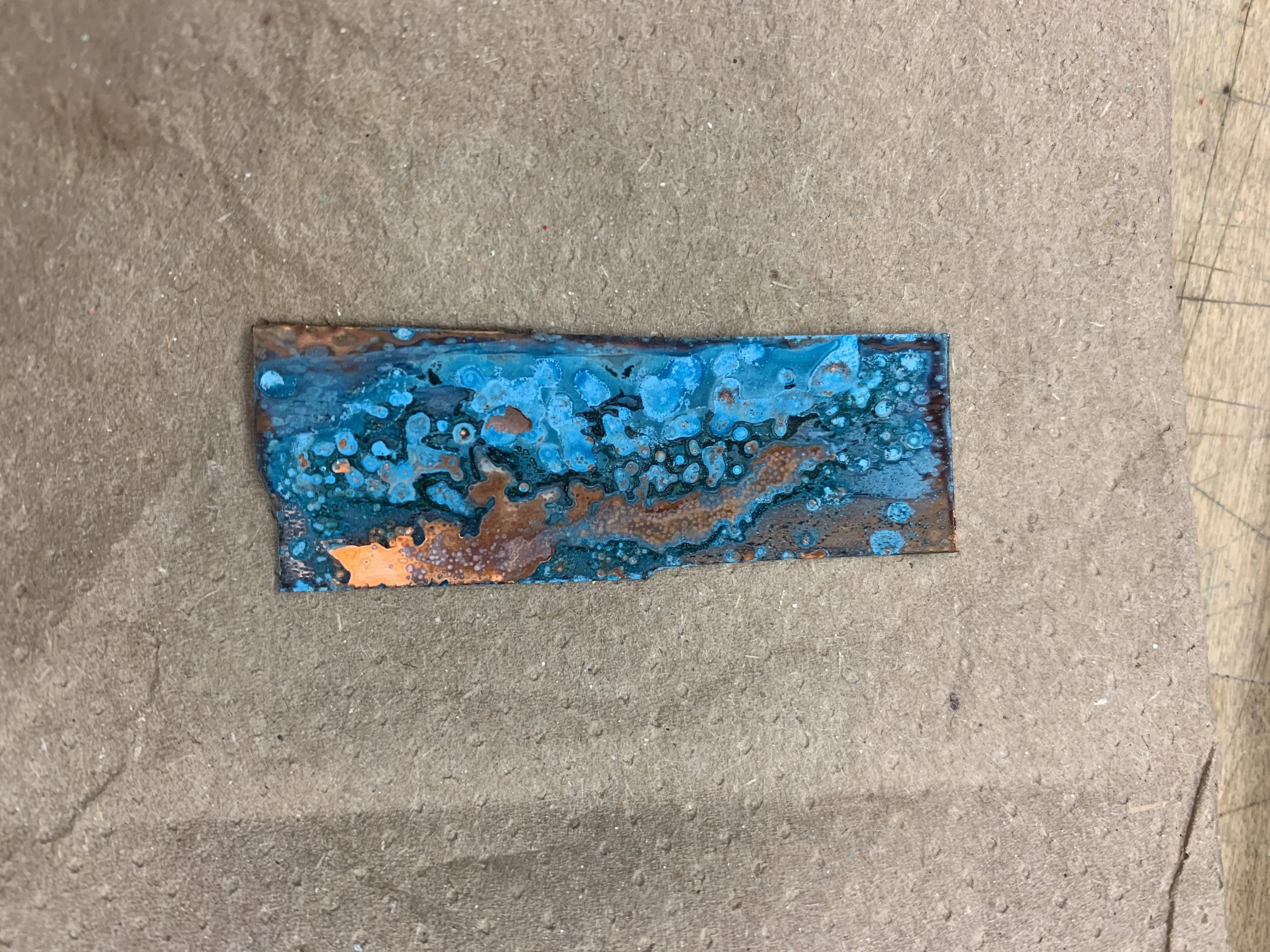 Ammonia and salt patina tests on copper.