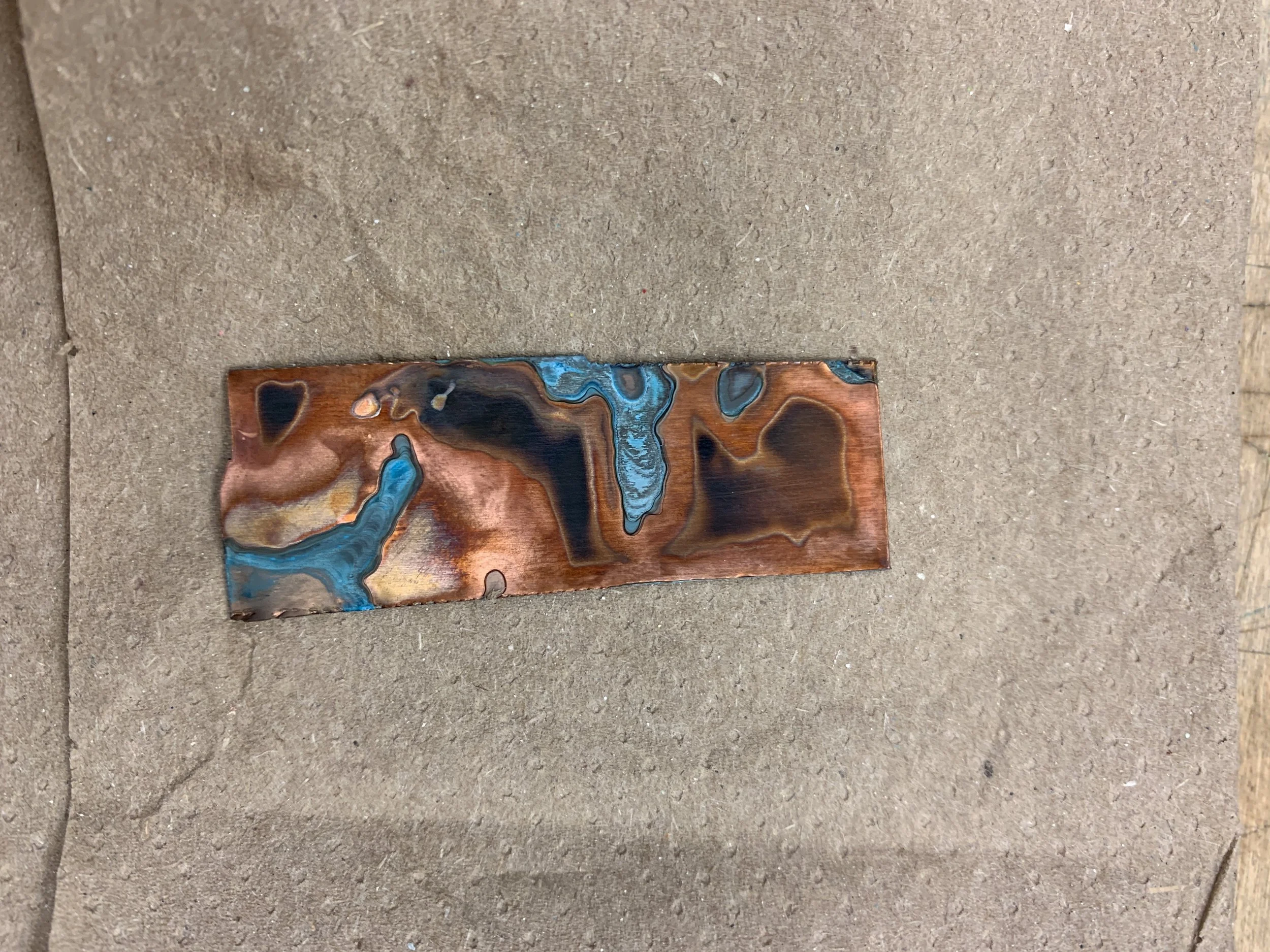After 24 hours the patina created two distinct effects.